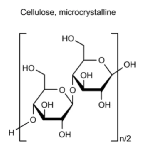 A cellulóz vízben nem oldódó poliszacharid, amely a növényi sejtfalak alapvető építőköve. A mikrokristályos cellulózt cellulózból sósav hatására állítják elő, a porított cellulózt a növényi rostokból származó cellulóz mechanikai megszakításával és tisztításával nyerik. Ez egy fehér színű, szagtalan, por formájú anyag.