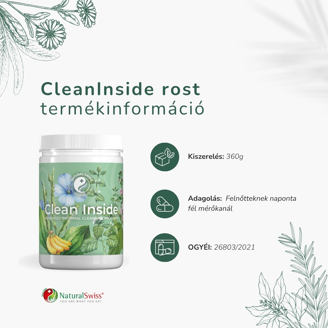 Egyedi termékkombináció a teljes körű béltisztításért. A Clean Inside® béltisztító Program három termékből áll, melyet kifejezetten a vastagbél legalaposabb és legtermészetesebb módon történő tisztítására fejlesztettünk ki.