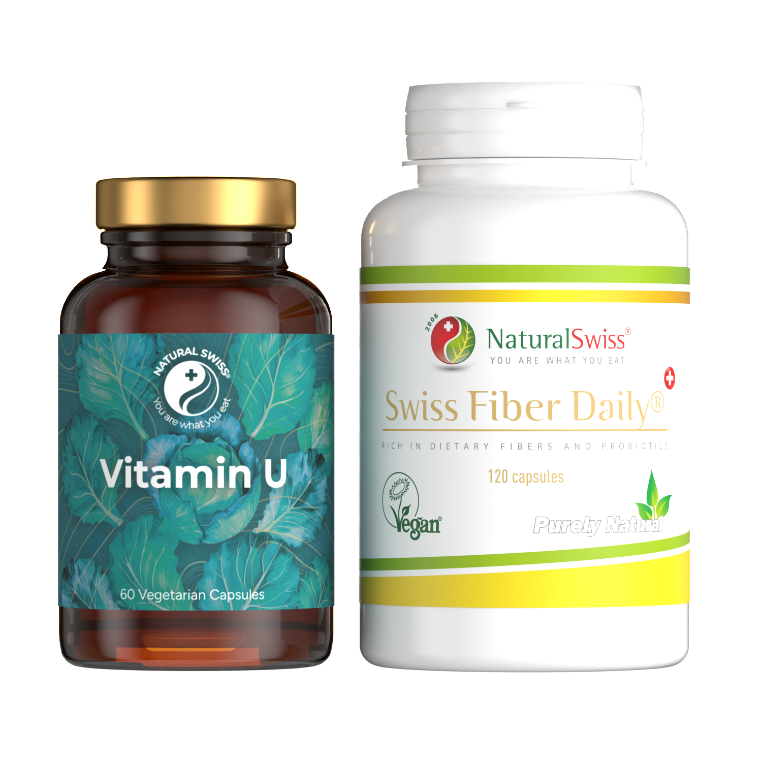A Swiss Fiber Dailyből vegyen be 2×2 kapszulát naponta étkezés előtt vagy közben. Alkalmazzon 2×1 kapszula Swiss Vitamin U-t naponta étkezés előtt vagy közben.
