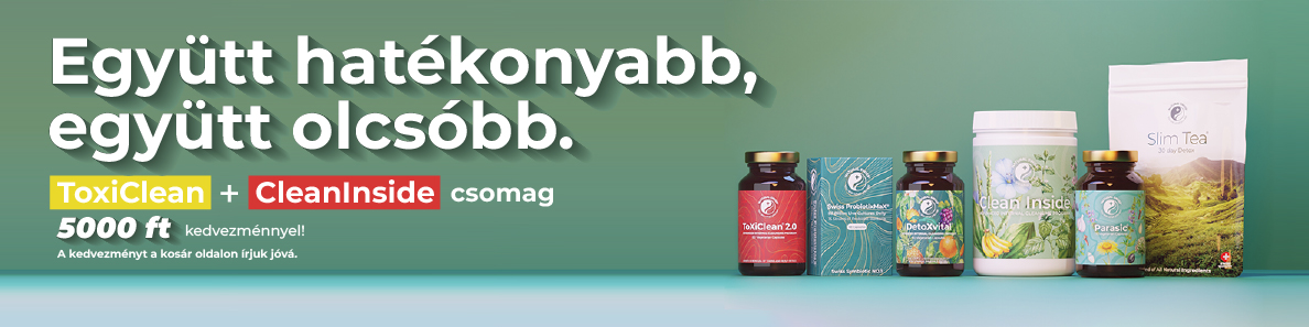 Egyedi termékkombináció a teljes körű méregtelenítésért. A ToxiClean méregtelenítő kúra arra fejlesztettük ki, hogy a Clean Inside programmal együtt alkalmazva még hatékonyabban tisztítsa és méregtelenítse belső szerveit az egészséges mindennapokért.